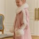 Crafted with 70% premium double wool, this coat also features quilted lining in the body for excellent insulation. The collar, pocket trims, pom-pom accents, and sleeves are decorated with high-quality, soft, and lovely eco-fur, making the coat instantly enhance a princess’s charm the moment she puts it on.
