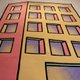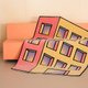 這款地毯以建築爲設計原型,將色彩明快的樓房形象生動呈現。主體採用粉黃撞色,搭配帶有放射狀紋理的紫藍窗戶,視覺活潑又富有藝術感。可放置於兒童房、客廳等空間,既能爲孩子營造充滿童趣的想象天地,也能爲家居增添一份獨特的藝術氛圍。