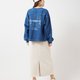 這款上衣採用吸睛設計,牛仔絨布料與牛仔布拼接,形成鮮明對比。背後的刺繡貼片和印花更添時尚氣息。泡泡袖勾勒出女性柔美身姿,搭配短褲或長褲也十分適合。