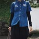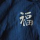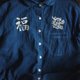 藍染短袖襯衣,左右胸口分別有一個福字和一個龍頭