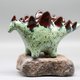 Each piece is handcrafted from clay, kiln-fired, and glazed by hand. This dinosaur is a result of an original artistic process, so no two are exactly alike. The surface features a beautiful combination of mint-green and deep red glaze with a speckled texture that gives it character and depth.