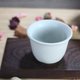 葉老師的汝瓷含鐵量適當,還原程度控制適度,胎呈香灰色,釉面在不同光源下時而天青,時而粉青,呈現土與釉的一種交融感,釉面的開片細膩如魚鱗,均勻與茶湯接觸後,紋理漸深,更顯潤澤。