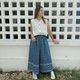 模特兒搭配寬褲的上衣,請參考此處的連結。