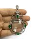 I hand carved the frame of the magnifying glass out of wax with prongs to set the emerald stones, I then cast the wax into silver. Then polished the piece, set the emerald stones and stuck the glass in the frame.