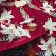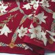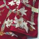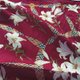 Vintage handkerchief made of quality woven cotton with a lightweight feel. It features a beautiful floral print with white lilies blooming alongside a classic check-pattern ribbon, arranged in a circular frame with radiating segments, all set against a rich red-burgundy background. Finished with a neat rolled hem. Truly cute and charming. ♡ A wonderful piece for yourself or a lovely gift for someone special.