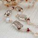 這條手鍊色調沈穩、質地清透,有琥珀感的煙燻茶晶與月光石微光,再加上紅石榴點綴,整體氣質高級又沉靜。煙燻色的茶晶像晚霞後的微光、紅石榴像香氣殘留,整體氣氛感十足、紅石榴與月光石像是暗夜中的情感波動。