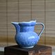此茶海以僧帽口為形,線條端莊而典雅。圓潤飽滿的壺身搭配簡潔實用的握把,手感穩妥,出水分流順暢不滴漏。器身施以沉靜的沺藍釉色,釉水於高溫窯火中自然流淌,留下層層堆疊的肌理與紋路,彷彿雲海蒼茫,帶來獨特的視覺深度。無論日常品飲,或茶席款待,皆能展現莊重卻不失靈動的氣韻。