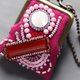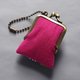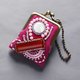 小さなビーズ刺繍のがま口 No.35 ビビッドピンクのガーゼ ネックレス・バッグチャームにも アクセサリーケース 手刺繍の一点物