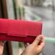 本当のカーネーションのようにマットな風合いの鮮やかな赤色のお財布。