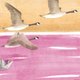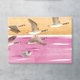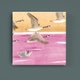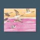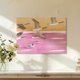 這幅作品描繪一位小小旅人,乘著紙船,在粉紅色的湖上前行。