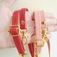 **兔年喜慶棉布+紅色緞布+粉紅毛巾布+金色磁扣+大吉大利金屬圓片,搭配紅色/粉紅色皮質可調式肩背帶。**