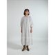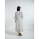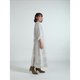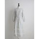 大きなレースを使用してどこか懐かしい印象のワンピースに仕上げました。襟ぐりは小さめで首にそうデザインになっていて、後ろネックでボタン開きになります。