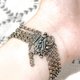——這件源自德國歷史主義時期的古董銀質手鍊錶,以細膩工藝展現歐洲珠寶的華麗風範。錶面周圍以優雅鏤空設計點綴,結合多股銀鏈,既具裝飾性又展現古典權威氣息。扣環處更以 洛可可風格雕花妝點,展現細緻柔美的裝飾語彙,並配有 安全鍊設計,兼具實用與典雅。