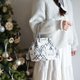 夜空の色が深くなる冬に溶け込むようなルックはモスクの街並みを織り込んだシルバーホワイトマリンバッグ。