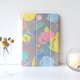 気ままにペイントしたパステル調の落書きと猫の柄の三つ折り手帳型プラケースタイプのiPadケースです。