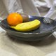 此盤以高溫窯燒成型,釉色介於咖啡與黑之間,隨光線變化展現不同層次與深邃質感。邊緣飾有葉形紋飾,如自然印記般點綴其上。整體低調而不失典雅,既適合作為日常餐盤,也可作為藝術收藏與居家擺飾。每件皆為獨一無二的手工陶藝,沉穩中蘊涵細膩之美。