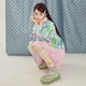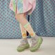 - 筒高包裹小腿,修飾腿部線條,邊緣黃色花邊俏皮靈動 圖案是tntntutu原創手繪花朵搭配幾何花朵與條紋的組合