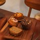 以烘烤深色榛果加上榛果醬、法芙娜巧克力與可可粉融合而成榛果糊,做成香氣極濃的蛋糕體,外層在淋上牛奶巧克力醬,最後加上榛果裝飾,讓每一口都是充滿堅果與巧克力香氣的大人味!
