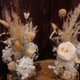 選用繡球容納絨絨兔耳、松蟲果實、木白合...等等花材