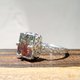 カラフルに輝くこの石を、シンプルな透かし模様にセッティングしました。
