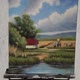 - An original oil painting called "Old times" on a canvas measuring 10x14 inches, on a stretcher (for ease of framing). This painting depicts beautiful puffy clouds over wildflowers and farmland. It is signed in the lower right corner, varnished and ready to be framed.