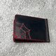 這款鈔票夾蜘蛛網短夾以其獨特的設計與材質,展現極致的風格與實用性。採用義大利植鞣革,黑色的底色搭配鮮豔的紅邊,無疑讓這款短夾在視覺上十分引人注目。外觀上,正反面皆縫製精緻的手工蜘蛛網圖案,紅色線條與黑色皮革形成鮮明的對比,展現出強烈的撞色效果,讓每一次使用都不失時尚感。
