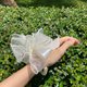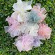 今次用料努力解決紗布的邊位易脫線的問題,所以選的紗布都是要包邊,成本都上升不少,但可以更顯檔次。布料自帶亮麗的感覺,在室內燈光下,亮麗效果會減弱。但在陽光底下更有反光的效果更注目。有兩種不同的美,可以在一個頭飾下欣賞到。