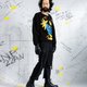 版型細節以暗黑系Oversize為基底,讓整體視覺保持著Oversize的寬鬆又帶點慵懶的韻味;利用緹花織法將繪本內頁插畫織在毛衣上,並以可愛現代抽象插畫風格與品牌暗黑氛圍形成對比;在袖口與下擺處使用羅紋織法,在視覺上使袖口與下擺呈現自然往內縮設計;材質上使用人造絲混紡製成,質地柔軟且有垂墜感;衣物適宜乾洗或冷水洗滌,不宜用力擰或高溫熨燙