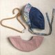 寶寶帽跟圍兜兜 圍兜與帽子雙面都可當正面依造型搭配。 此款圍兜每個角度都能當成正面,扣子處不規則領狀,添加了小俏皮。