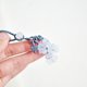 手工編制淺紫色線繩,按照由深色到淺色錯落給花朵排序,搭配荔枝凍圓珠製作珠扣。搭配手工編制淺藍色小葉子,是一款非常耗時的小吊飾,幸而成品很美麗。天然瑪瑙,帶有天然紋路,介意勿拍!