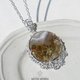 植物を閉じ込めたような独特な風景をもつアゲートを、ボタニカルなイメージの透かし模様の台座にセットしたペンダント。