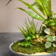 整體構圖以「附石生長」為核心概念,植物與石頭共存、互依,展現自然中微觀的力量與平衡。這不僅是一盆植栽,而是一幅以綠意構築的風景片段。