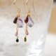 ラフドロップカットのピンクアメジストをポイントにガーネット、トルマリンを合わせた秋らしいピアスです