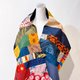 這件拼接作品包含了生活的體驗,每一塊布料來自不同的國度、不同的地區、不同的時間,用細細膩膩一針一線連接在一起。即使背面也毫不含糊的用隱藏針腳的技巧固定,展現細節美好的一面。就 如對生命的領略,需要用心珍惜每分每秒、曾經在生命中駐足過的人事時地物。另一面使用了來自日本特選的草木染絲質布料,特殊染製的墨黑濃郁又神秘,忍不住想定睛凝視。感覺就像生命中再多的絢爛,最後會回歸到無垠宇宙的沈靜的懷抱中。
