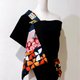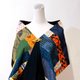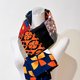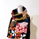 不對稱的拼接手法讓圍巾只要簡單利用不同的折疊、圍繞,隨心所欲選擇展現拼接的華麗或是墨黑的高貴,偶爾還能不經意露出底層的華麗圖案,就可以輕鬆呈現多樣面貌。