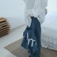 藍色格紋款與原有顏色包包大小一致,布料材質選用 100% 棉,比經典色更輕盈柔軟,放入物品後呈現的自然垂墜感,是它最迷人的地方。整體視覺更顯輕鬆、柔和,讓日常造型多了一份不經意的隨性魅力。