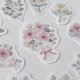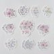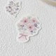 落ち着いた色合いのお花を集めたフレークシールです。くすみピンクや紫の実もの、アイボリー色の花々を、やわらかいタッチを心がけて描きました。