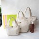 一番人気のシンプルなトートバッグ。ドーナツボタンがアクセントの、軽く柔らかで持ちやすいカバンです。三種類のサイズの中から、使いやすいバッグを見つけてください。