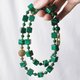 設計師嚴選**頂級孔雀石**,磨製**方形**珠飾,精工拋光、珠面高光,寶石色彩正而濃艷,纏絲色帶紋理優美,品相頂級。