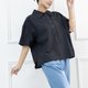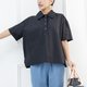 襯衫領風衣材質短袖上衣 黑色 - 女 T 恤 - 其他材質 黑色