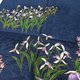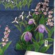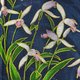 An exquisite vintage Japanese handkerchief crafted in soft cotton with a luminous print, featuring a sophisticated botanical design of orchids beloved in Japan. Outlined with delicate gold accents (Kinsai technique). The deep indigo background highlights the graceful blooms: