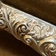 美麗的純銀放大鏡,手柄雕飾以纏繞的藤蔓與柔順花葉紋構成,呈現出19世紀末20世紀初盛行的Art Nouveau自然曲線美。手柄上可見英國伯明罕印記:行走獅、船錨,以及年份字母「m」,並刻有銀匠「H W Ld」標記,細節清晰可辨。