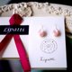 真珠母貝。真珠が作られる貝を用いています。貝の裏側にある真珠層を用いた素材です。光が当たると虹色に輝き、贅沢な美しい光沢を放ちます。
