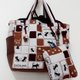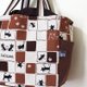 - 手工裁布製作一只量 日本貓咪圖棉麻布料 皮革花提袋