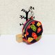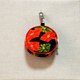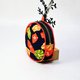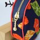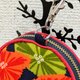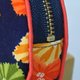 紺色地に扇型の花のような柄が描かれた着物をリメイクして作りました..