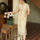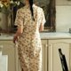 紫色碎花優雅艺文,穿上有一種文靜大小姐的氣質,這個小系列的領子都做了弧形開口設計,雖然是立領但不會悶熱,也不需要盤扣了,說實話盤扣元素已經太過氾濫,而且這種類似V領的設計除了顯臉小拉長脖子之外,還非常非常適合佩戴項鍊,個人推薦珍珠項鍊。