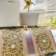 No.158はメタリックな艶めきを放つ希少なピンクリボンに、一つひとつ丁寧に施されたゴールドのビジューが立体的に輝く、ラグジュアリーな長財布です。日差しを浴びると眩しいほどの華やぎを放ち、まるでジュエリーのような存在感。ピンクは「人とのご縁」を結び、信頼や温かなつながりを育む色。そこに豊かさと金運を引き寄せるゴールドの輝き、女性を守り魅力を高めるパールが重なり合い、大人の女性の手元にふさわしい気品を生み出します。持つたびに心がときめき、自分らしい輝きと素敵なご縁を引き寄せる――お守りのように日常を彩る、唯一無二のひと品です。