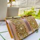 美しく可愛いデザインのインド刺繍のリボンと、美しい艶感のあるリボンを一枚一枚厳選し、それらをアレンジして組み合わせる事で、一枚の布として仕上げ、お財布表面のデザインとして形作っています。