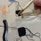 コットン糸の細かなステッチを、立体的なビーズのステッチで縁取りました。