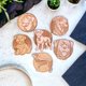 Each coaster is made from high-quality wood, carefully sanded, painted, and sealed for lasting durability. Measuring approximately 9 cm (3.6") in diameter, these coasters are sturdy yet lightweight, ideal for daily use. Their smooth finish ensures your furniture remains protected from heat, moisture, and scratches.